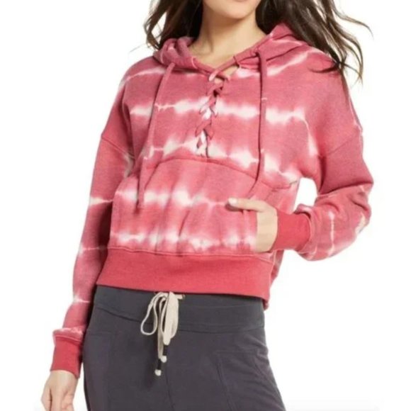 Your ultimate loungewear addition: this soft & relaxed hoodie from Free People, made vibrant by splashy tie-dye and finished with a cute lace-up detail.