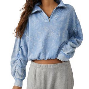 Free People FP Movement Valley Girl Sweat Top, Cropped Sweatshirt Ruched NWOT, M
