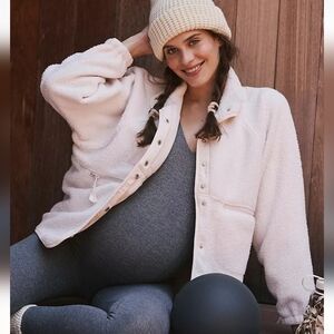 Our staple fleece now made in a maternity-friendly fit, this staple jacket is perfect to layer over activewear or streetwear featuring a button-up front with cool zippered pocket details.