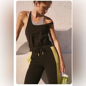 Free People FP Movement new Flow black combo Flare Onesie racerback jumpsuit size small brand new