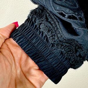 Free People FP Movement Black Care Seaside Fleece Crochet & Embroidered Pullover