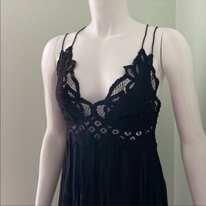 Free People FP ONE Adella Boho Crocheted Slip Dress in Black Made in India - S