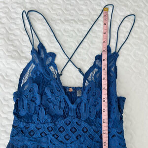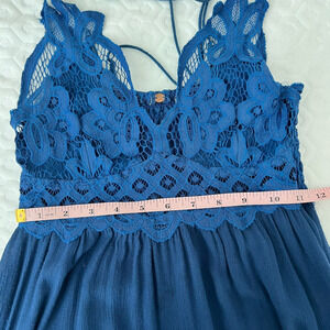 Free People FP One Adella Slip Dress Women Small Navy Floral Crochet Lace Ruffle