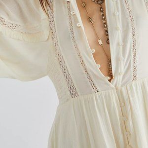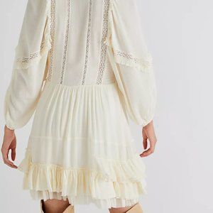 Timeless and forever femme, this stunning mini dress features a ruffled, tiered silhouette with lace piecing and front hook-and-eye closure for a truly ethereal must-have.