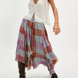 NO CRAZY OFFERS, PLEASE Free People FP One Averie Maxi Skirt Size Medium Perfect in plaid, this quintessentially FP maxi skirt will be your go-to all season long. Mid-rise, billowy tiered fit Elastic waistband for pull-on ease, plaid print throughout, asymmetrical tiered hemline, raw-edge seaming throughout Machine Wash Cold 33% Viscose 67% Cotton Lining: 100% Cotton