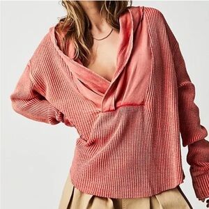 Free People FP One Axel Thermal Hoodie in lipgloss, which is a coral/pink color