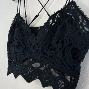 Free People FP One Black Ilektra Longline Bralette / Crop Top Strappy Lace XS