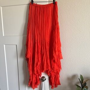 Add flair with this bright orange maxi skirt. Flowing design for a chic look.