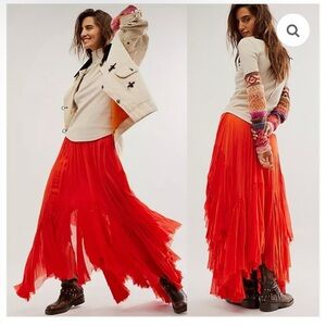 Free People FP One Clover Maxi Skirt Tangerine Orange