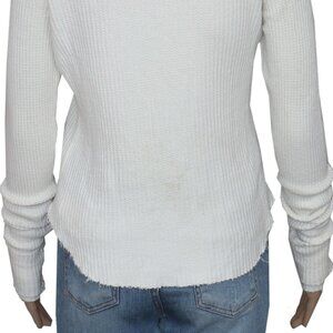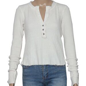 Free People FP One Colt Thermal Button Long Sleeve V Neck Blouse Top White New M