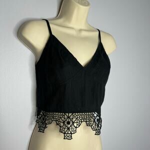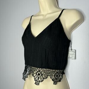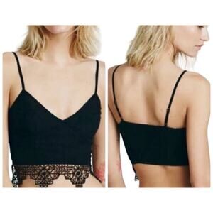Free People FP One Geo Lace V Neck Bralette Crop Top Boho Black Women's M New