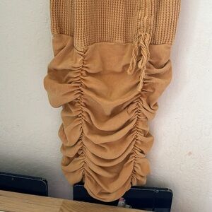 Free People FP One Katya Thermal Mini Bodycon Dress Gold Tan Small