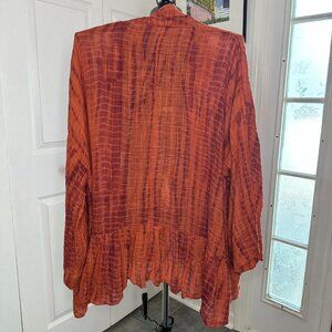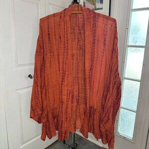 Free People FP One Sasha Boho Tie Dye Kimono Ruffled Hem Size XS/S Orange