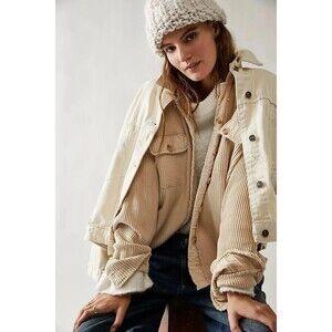 Free People FP One Scout Jacket Top Waffle Knit Buttondown Oversized L 283350