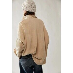 Free People FP One Scout Jacket Top Waffle Knit Buttondown Oversized L 283350