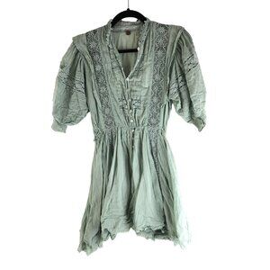 Free People FP One Sydney Mint Green Boho Dress Lace Button Details Size XS