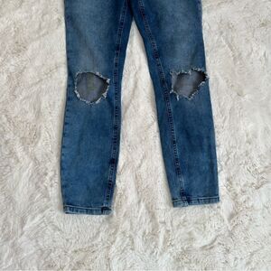Free People FP Slightly acid wash size 30r blue skinny jeans w holes in knees