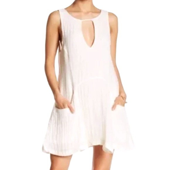 Free People FP Smooth Sailing White Linen Mini Dress Cover Up Sze Medium