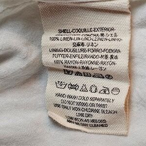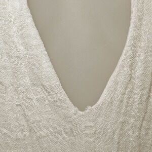 Stylish, comfortable mini dress that is equalky great as an actual dress or as a bathing suit cover up or as a tunic top over denim shorts. It has a universally flattering shade of linen white that is perfect to show off a bit of a tan. Dress has deep pockets, a keyhole neckline, pullover styling, it has a subtle stretch, is softly lined, and an asymmetrical hemline. The dress is in good pre-owned condition, with no stains or tears. It does have a bit of fraying at the point of the neckline. Please review all photos before purchasing. The dress in the photos is the actual dress being purchased.