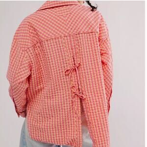 Free People FP We The Free Womens Boho High Tide Button Down Gingham Shirt in Coral. Size Extra Small.