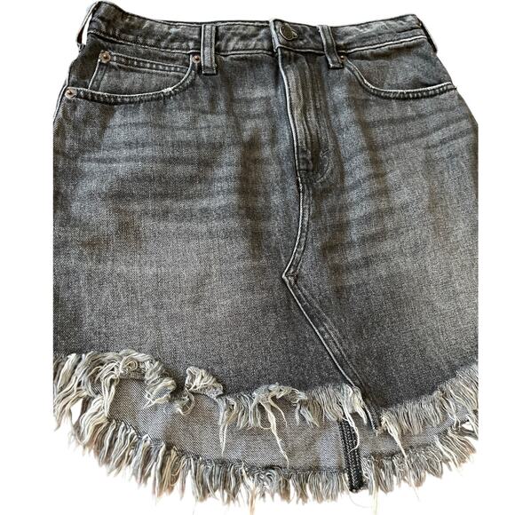 Free People Faded Black Denim Rounded Raw Hem Fringe Mini Skirt Bailey Size 27