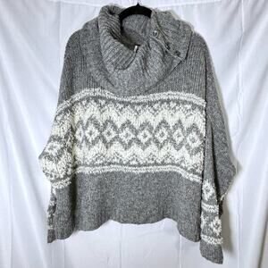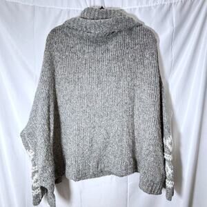 Free People Fairisle Split Neck Wool Blend Sweater Gray Ivory Size M