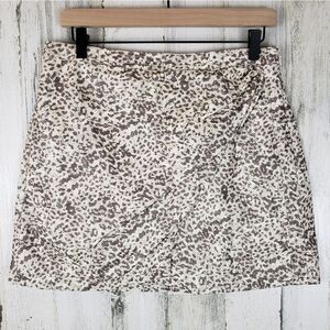 ~ Description: Ivory and tan leopard print faux wrap skirt, faux leather material, non-stretch, back zipper closure