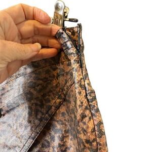 Free People Fake Out Leopard Print Faux Leather Faux Wrap Mini Skirt Size 2. Like new. See photos for details and measurements. Side zipper, lined, Stay wild no matter the season with the Free People Printed Fake Out Brown Leopard Print Faux Wrap Mini Skirt! Smooth vegan leather, with a black leopard print and subtle snake print, shapes this high-rise mini skirt with an A-line silhouette that has a pleated overlay at the front that creates a faux wrap look. Hidden side zipper/clasp.