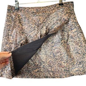 Free People Fake Out Leopard Print Faux Leather Faux Wrap Mini Skirt Size 2