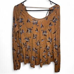 Free People Fanta Open Back Fall Floral Goldenrod Long Sleeve Sz Medium