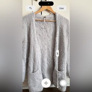 Free People Faux Fur Cardigan in Light Blue/Gray Size Small