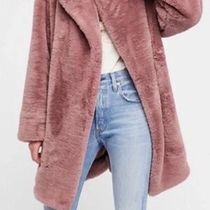 Free People Faux Fur Jacket Dusty Rose/Pink Color Sz M/L