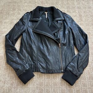 Free People Faux Leather Moto Biker Jacket Women's 2 Black Crop Grunge Vegan