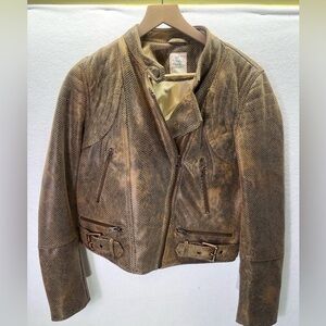 Free People Faux Leather Moto Jacket Womens S Vegan Leather Brown Cute Trendy