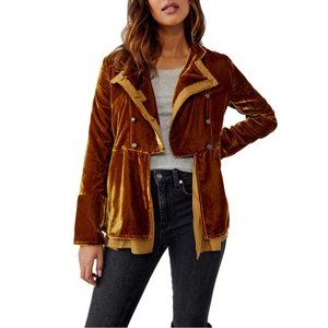 Free People Faye Velvet Jacket in Warm Tobacco
