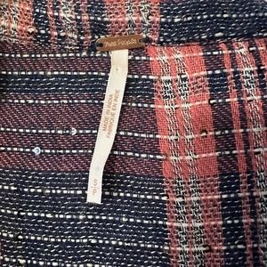 Free People Fearless Love Pink Blue Plaid Sequin Boho Button-Down Shirt - SP