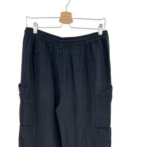 Free People Feelin' Good Pants Linen Blend Utility Cargo Black Size Small