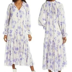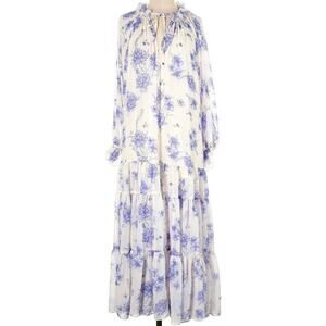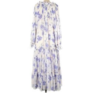 Free People Feeling Groovy Sheer White Blue Floral XS Maxi Dress