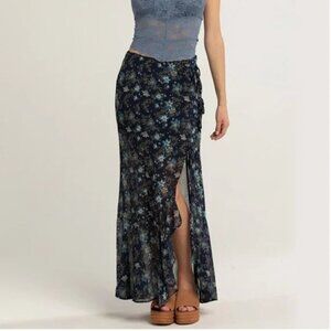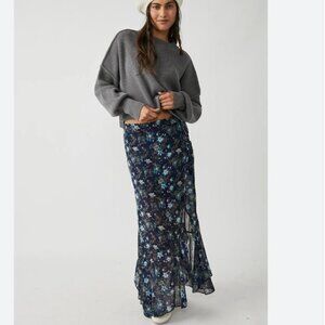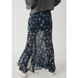 Free People Femme Edge Maxi Skirt Indigo Blue Floral Size 6