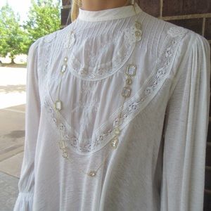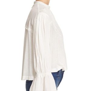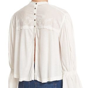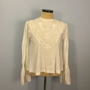 Free People Medium Ivory Femme Fatale Lace Embroidered Bell Sleeve Top Blouse