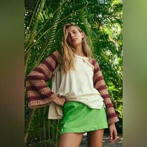 So unique from our We The Free collection, this one-of-a-kind tee is featured in a soft cotton fabrication and slouchy silhouette with contrast sleeves and printed detail.