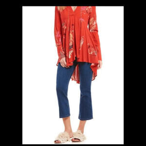 Free People Field of Butterflies Red Oversized Tunic/Dress