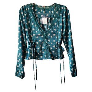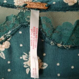 Rare Women's Free People Field of Roses Green Floral Top XS
