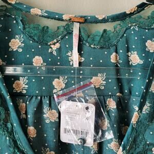 Free People Field of Roses Green Floral Top XS Cottagecore Coquette Renfair NEW