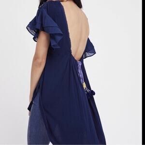 Free People Fiesta Nueva Tunic Top Embroidered Open-Back Blue Size Small