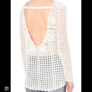 Free People Filet White Crocheted Open Knit Boho Cropped Sleeve Top