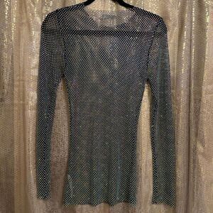 Free People Filter Finish Navy Blue Iridescent Rhinestone Mesh Top XS NWOT