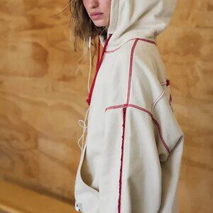 Free People Final Call Rose Logo Hoodie Floral Embroidered Sweatshirt Jacket