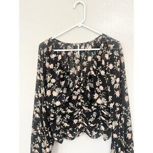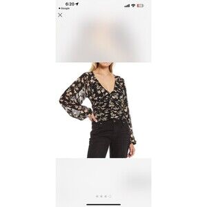Free People Final Rose Floral Blouse in Black Combo Womens Size Large