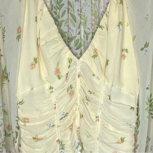 Free People Final Rose Yellow Floral Ruched Top Large